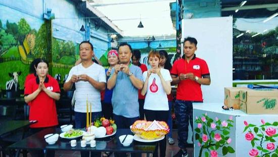 姜柔伊的哥哥姜礼国日前陆续透过脸书发文,晒出兄妹俩在越南一间牛排馆的照片。从画面中可观察出,姜柔伊头戴发巾,穿着宝蓝色上衣,在镜头前露出灿笑,和姜礼国并未穿着红色员工制服,兄妹俩更站在前方位置,率领员工祭拜。